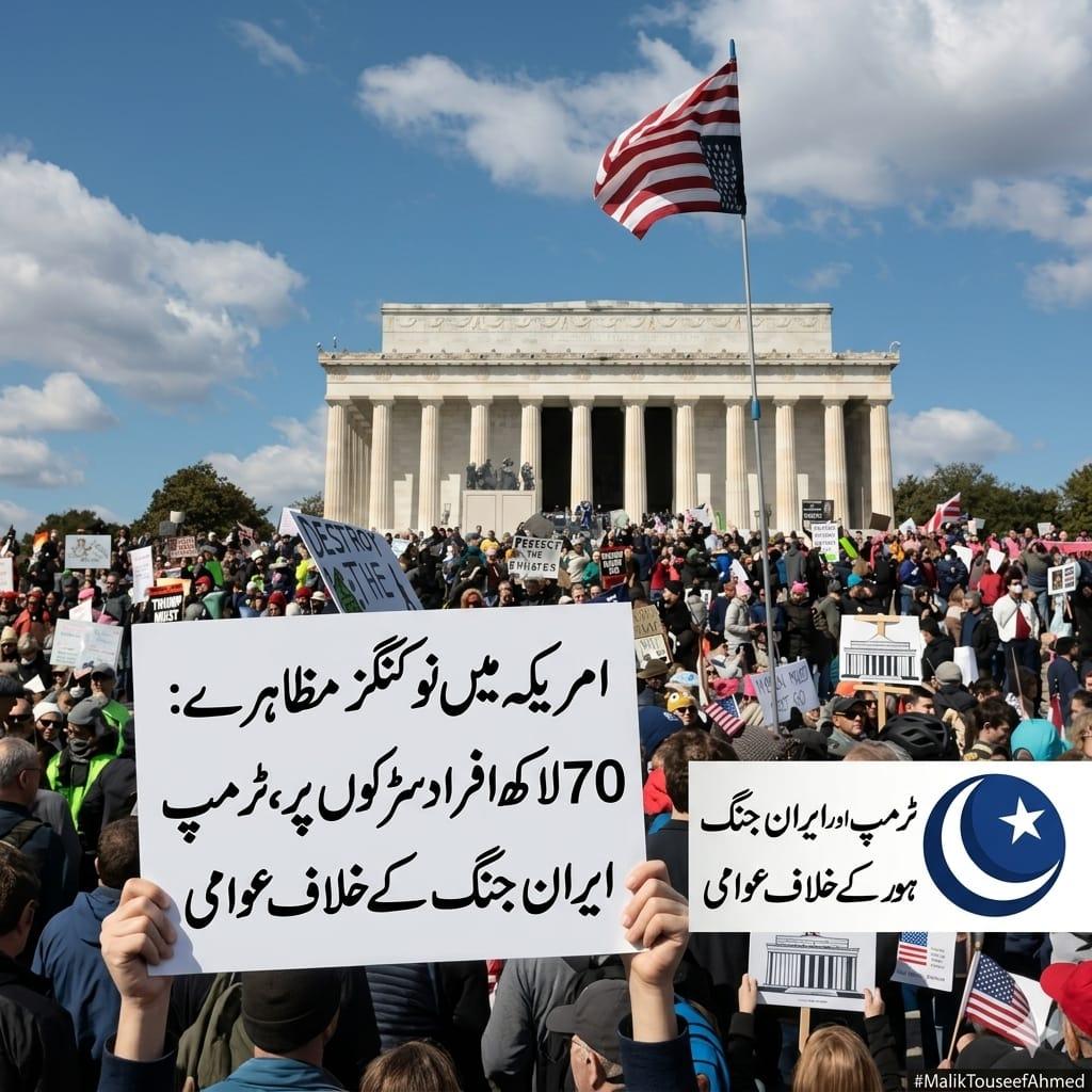 ​نیویارک/واشنگٹن (خصوصی رپورٹ)امریکہ کی تاریخ میں احتجاج کا ایک نیا باب رقم ہو گیا ہے۔ ہفتے کے روز امریکہ کی تمام 50 ریاستوں اور دنیا کے 16 سے زائد ممالک میں “نو کنگز” تحریک کے تحت لاکھوں افراد نے صدر ڈونلڈ ٹرمپ کی پالیسیوں، خاص طور پر ایران کے خلاف “غیر قانونی جنگ” اور تارکین وطن کے خلاف کریک ڈاؤن آئی سی آئی کے خلاف بھرپور احتجاج کیا۔ عالمی میڈیا رپورٹس کے مطابق، یہ امریکی تاریخ کا سب سے بڑا مربوط احتجاج ثابت ہوا ہے جس میں صرف امریکہ کے اندر 3000 سے زائد مقامات پر ریلیاں نکالی گئیں۔​”نو کنگز” اتحاد، جس میں ‘ان ڈیویزیبل’ اور ‘50501’ جیسی بڑی عوامی تنظیمیں اور لیبر یونینز شامل ہیں، نے اس تیسرے بڑے احتجاجی دن کا اہتمام کیا۔ آرگنائزرز کا دعویٰ ہے کہ اس احتجاج میں شرکت کرنے والوں کی تعداد پچھلے تمام ریکارڈ توڑ چکی ہے۔ نیویارک کی سڑکوں پر مظاہرین کا ایسا رش تھا کہ مشہور سیونتھ ایونیو پر تل دھرنے کی جگہ نہ تھی۔ واشنگٹن ڈی سی میں مظاہرین نے لنکن میموریل سے نیشنل مال تک مارچ کیا اور وائٹ ہاؤس کے قریب جا کر صدر ٹرمپ کے خلاف نعرے بازی کی۔​اس بار مظاہروں کا سب سے بڑا محور “ایران کے خلاف جنگ” کی مخالفت تھا۔ فلوریڈا سے تعلق رکھنے والی نیشنل کوآرڈینیٹر سارہ پارکر نے میڈیا سے گفتگو کرتے ہوئے کہا کہ “گزشتہ احتجاج کے بعد سے گیس اور اشیائے خوردونوش کی قیمتیں آسمان سے باتیں کر رہی ہیں، جبکہ حکومت ایران میں ایک غیر قانونی جنگ لڑ رہی ہے۔ امریکی عوام اب خاموش نہیں رہیں گے۔” شکاگو کے گرینٹ پارک میں ہزاروں افراد نے “ٹرمپ مسٹ گو” کے نعرے لگائے، جہاں میئر برینڈن جانسن نے بھی خطاب کرتے ہوئے تحریک کی حمایت کی۔​مظاہرین نے امیگریشن اینڈ کسٹمز انفورسمنٹ کی جانب سے کیے جانے والے پرتشدد کریک ڈاؤن کی بھی شدید مذمت کی۔ خاص طور پر منیسوٹا کے جڑواں شہروں (سینٹ پال اور منیا پولس) میں ہزاروں لوگ تارکین وطن کے حق میں سڑکوں پر نکلے، جہاں حال ہی میں فیڈرل ایجنٹس کی کارروائیوں کے دوران ہلاکتیں ہوئی تھیں۔ سینیٹر برنی سینڈرز اور جین فونڈا جیسی معروف شخصیات نے ان مظاہروں میں شرکت کر کے تحریک کو مزید تقویت دی۔​یہ احتجاج صرف امریکہ تک محدود نہیں رہا بلکہ ٹوکیو، پیرس، برلن، روم، لندن اور سڈنی میں بھی “نو کنگز” کی ریلیاں نکالی گئیں۔ لندن میں ہزاروں افراد نے نفرت کی سیاست کے خلاف مارچ کیا، جسے ایمنسٹی انٹرنیشنل اور بڑی ٹریڈ یونینز کی حمایت حاصل تھی۔ مظاہرین کا کہنا تھا کہ وہ امریکہ میں “بادشاہت” یا آمریت کے قیام کو ہرگز قبول نہیں کریں گے اور یہ جمہوری جدوجہد 28 مارچ کے بعد بھی جاری رہے گی۔​دوسری جانب وائٹ ہاؤس اور ریپبلکن قیادت نے ان مظاہروں کو مسترد کرتے ہوئے انہیں “ٹرمپ ڈرینجمنٹ تھراپی سیشنز” قرار دیا ہے۔ تاہم، سیاسی تجزیہ نگاروں کا کہنا ہے کہ نومبر کے وسط مدتی انتخابات سے پہلے اتنی بڑی تعداد میں لوگوں کا سڑکوں پر آنا ٹرمپ انتظامیہ کے لیے ایک بڑا سیاسی خطرہ بن سکتا ہے۔