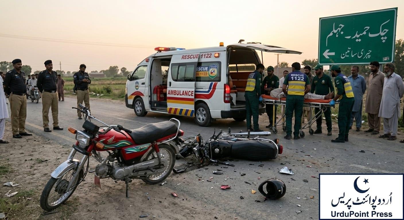 تفصیلاتِ کے مطابق ضلع جہلم کی تحصیل پنڈ دادن خان کے علاقے چک حمید کے قریب ایک افسوسناک ٹریفک حادثہ پیش آیا، جہاں تیز رفتاری کے باعث دو موٹر سائیکلوں کے درمیان شدید تصادم ہوا۔ ریسکیو 1122 کو اطلاع موصول ہوتے ہی ایمرجنسی ٹیمیں فوری طور پر جائے وقوعہ پر پہنچ گئیں۔ اہلکاروں نے پیشہ ورانہ مہارت کا مظاہرہ کرتے ہوئے زخمیوں کو موقع پر ابتدائی طبی امداد فراہم کی اور انہیں فوری طور پر قریبی و متعلقہ ہسپتالوں میں منتقل کیا۔